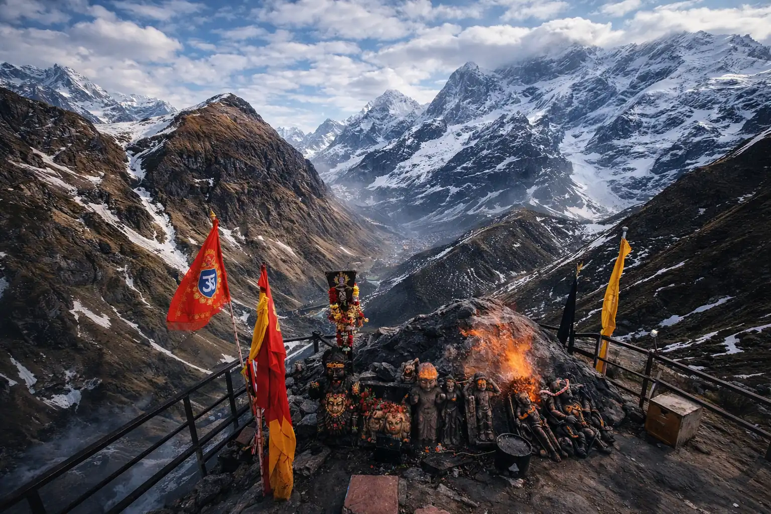 A short, steep climb from the main temple leads to the Bhairav Nath Temple. According to tradition, Lord Bhairav---a fierce form of Shiva---is the protector of the entire Kedarnath valley. It is believed that when the temple closes for the harsh winter, Bhairav stands guard over the sacred land. For this reason, many pilgrims feel their visit is only complete after paying respects here and taking in the panoramic views.