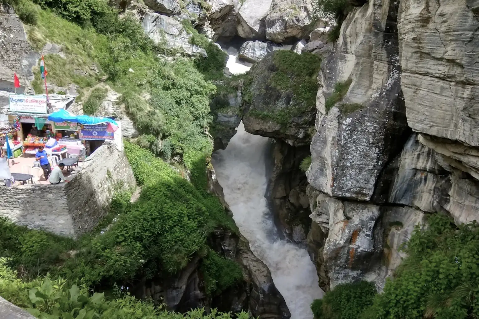Mana is one of the rare places where the Saraswati River is actually visible, emerging with great force from a rocky crevice. According to Vedic tradition, the river flows mostly underground elsewhere, making this specific site highly consecrated.