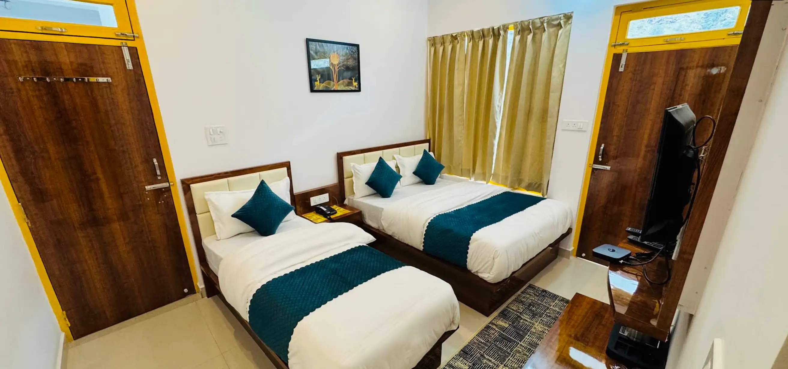 Tridev - Hotel Tridev is one of main market located hotel near to Guptkashi bus stand on Kedarnath Highway. It has basic room mainly double & four bedded room with all necessity like clean beds, telephone, Television with satellite channels attach bath facility with Hot/Cold water facility, Chair, Table, Room Service & restaurant. Hotel provides decent stay with all its requisite facilities & best services. Staff is welcoming, friendly & efficient.